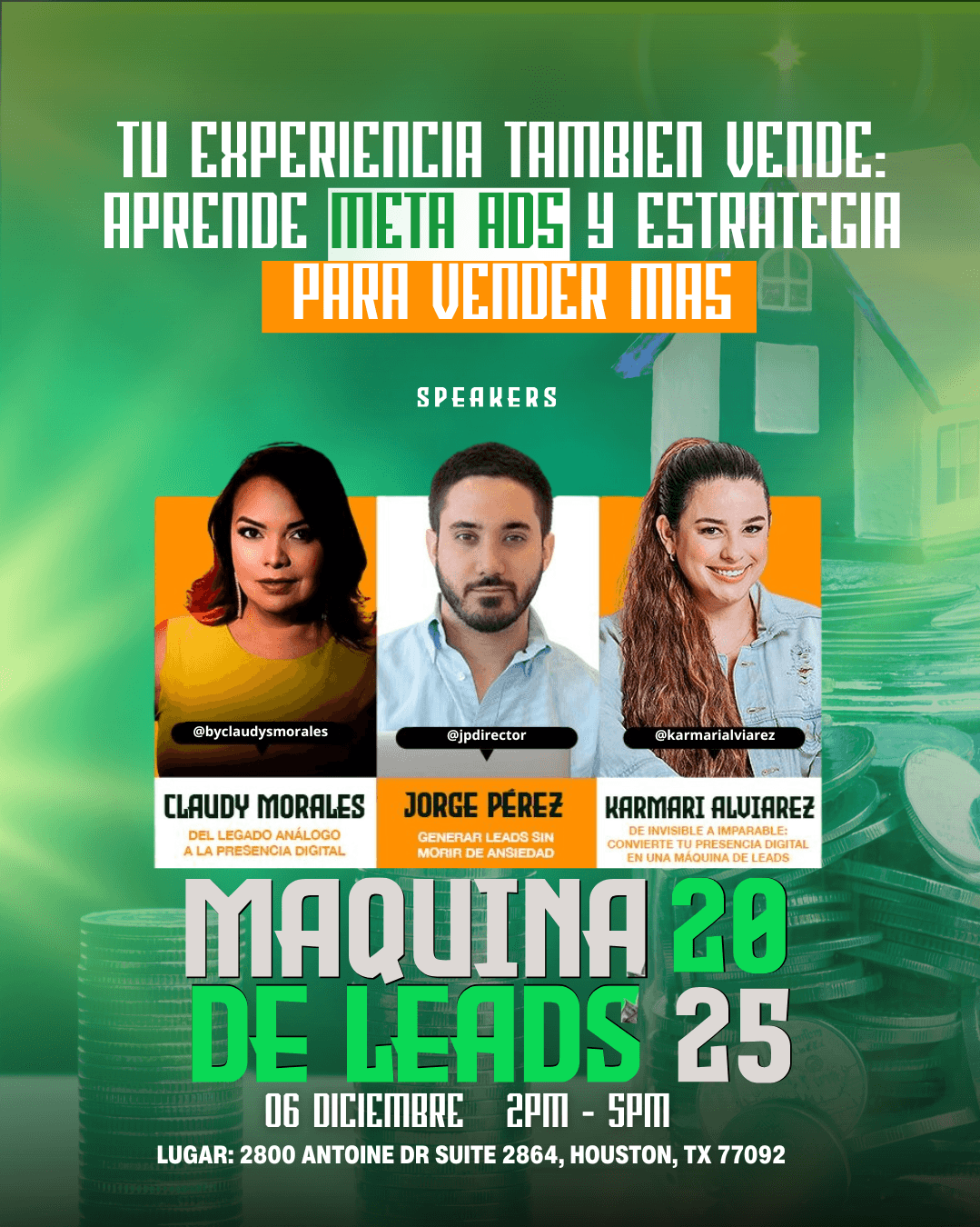 ¿Sigues invirtiendo en “boost” sin saber a quién le hablas? Jorge Pérez te enseñará a segmentar tus anuncios en Meta Ads con estrategia real —para atraer leads calificados y dejar de regalar dinero. Claudy Morales te mostrará cómo transformar tu legado en presencia digital poderosa, y Karmari Alviarez revelará las claves para crear una máquina de leads imparable. Una sola fecha. Un solo lugar.
